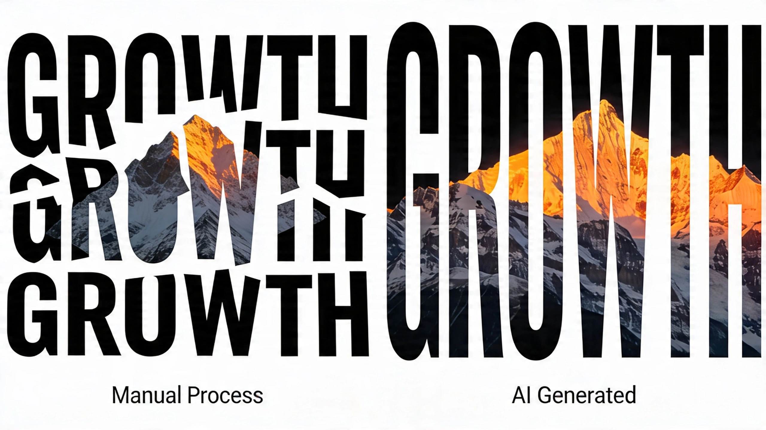 | Masking Image into Text | Requires searching for letter frames, manual kerning, and repetitive image alignment. (10-20 mins) | Automated via prompt. Type the word and specify the image. AI generates the SVG clip path instantly. (5 seconds) |